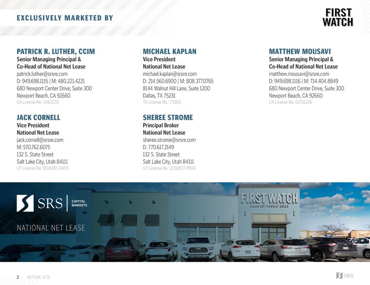 SRS National Net Lease is pleased to offer the opportunity to acquire the fee simple interest (land & building ownership) in an absolute NNN, freestanding First Watch investment property located in Layton, Utah (Salt Lake City MSA). The tenant, Rise and Smile LLC, recently signed a brand new, 15-year lease with 4 (5-year) options to extend, demonstrating their commitment to the site. The lease features 10% rental increases every 5 years throughout the initial term and at the beginning of each option period, steadily growing NOI and hedging against inflation. The lease is absolute NNN with zero landlord responsibilities making it an ideal, management free investment opportunity for a passive investor. First Watch (NASDAQ: FWRG) is a rapidly expanding restaurant chain with over 630 locations across 32 states. The subject property will feature new 2025 construction with state-of-the-art materials and the brand’s latest modern store design.