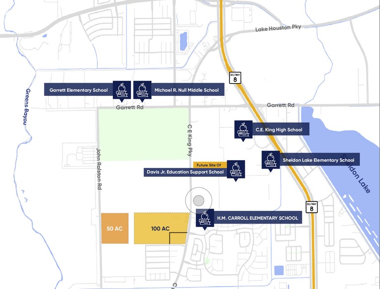 • Possibilité de développement dans le nord-est de Houston • Accès facile au Beltway 8 et à l'autoroute 90 • À l'extérieur des plaines inondables • 50 AC adjacents potentiellement disponibles • Détention sur place existante • 15 minutes de l'IAH et de Port Houston