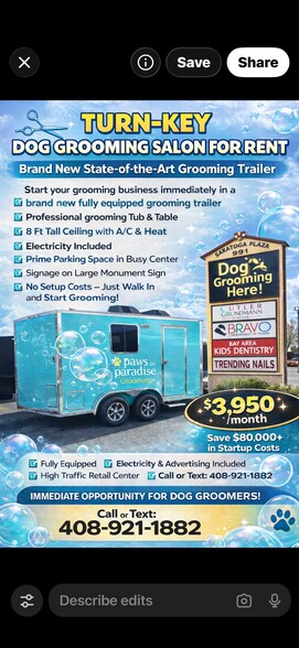 turn key new dog grooming space, ready to start. please call or text 408-921-1882