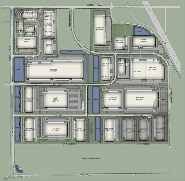 - Build-to-suit sites available for sale or lease, ranging from 10 to 33 acres with buildings 50,000 to 500,000 SF