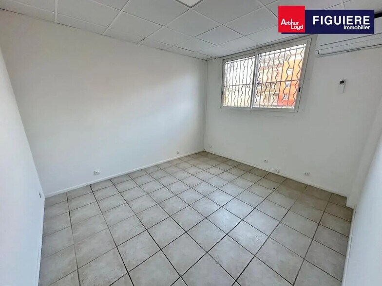 ARTHUR LOYD FIGUIERE IMMOBILIER vous propose à la location une surface de bureaux d'environ 90m² au rez-de-chaussée. L'immeuble est idéalement situé, proche des axes autoroutiers et du Centre-Ville d'Aix en Provence. La cellule est aménagée en plusieurs espaces de travail. Volet roulant sur chaque fenêtre.2 places de parking privatives sont louées avec les bureaux. Barrière automatique Totem à l'entrée Climatisation réversible Carrelage au sol Un accueil 3 bureaux Sanitaires privatifs Espace cuisine Surface RDC : 90 m²