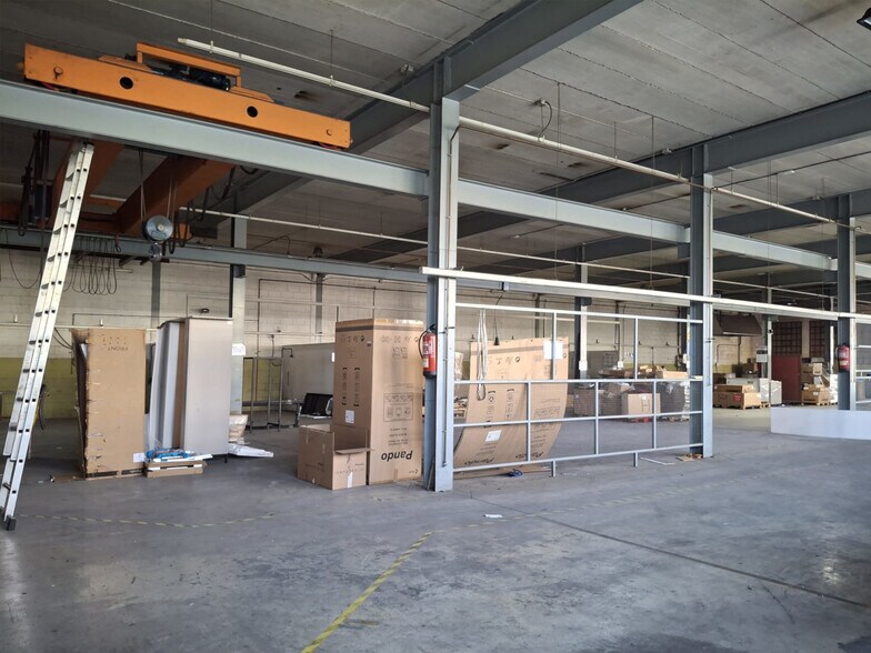 La planta baja alberga una amplia área de trabajo equipada con grúa puente para la manipulación de cargas pesadas. Cuenta con una altura libre de 4,09 m más 0,88 m, lo que facilita la operativa diaria. La planta primera dispone de cubierta a dos aguas, con una altura mínima de 2,50 m y una altura máxima cercana a los 5 m, y acoge espacios destinados a oficinas y otros usos complementarios.