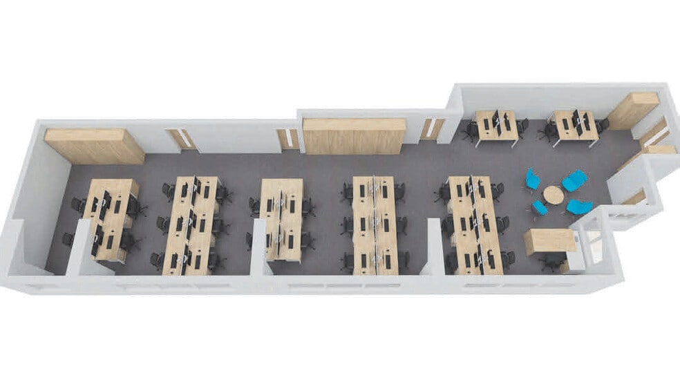 The first-floor office provides 2,050 sq ft of flexible open-plan space with private kitchen facilities and on-site parking. Offered on a simple lease, the rent is £3,500 per month, fully inclusive of heating, lighting, power, business rates, and service charge (VAT applicable). The layout accommodates up to 30 people plus meeting rooms, delivering a practical solution for larger teams.