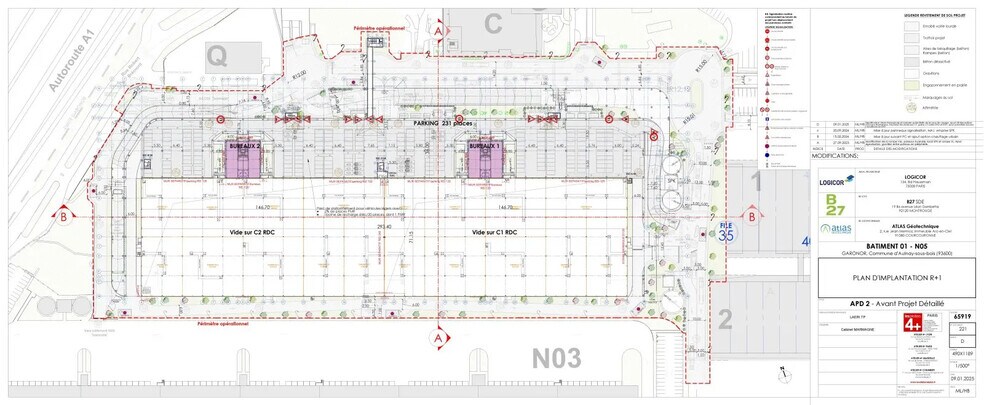 AULNAY-SOUS-BOIS (93), CBRE, vous propose une messagerie à développer d'environ 36 312 m² divisible. Positionné à environ 15 km de Paris (Porte de la Chapelle) et 13 km de Roissy CDG, et à proximité immédiate du Centre Commercial « O'Parinor ». Garonor bénéficie d'une excellente desserte routière grâce au noeud autoroutier A3 et A1. PC/ICPE obtenus. A104 et N2 (1 km). Le Bâtiment 1 s'inscrit en partie Sud de Garonor. _ EQUIPEMENTS (évolutifs) : Sprinkler Détection incendie RIA Panneaux photovoltaïques en toiture Pompes à chaleur pour le chauffage entrepôt Bureaux système VRV à cassettes GTB RDC : Bâtiment Monoface Hauteur environ 10 m Résistance au sol 5 t/m² Poteaux tous les 12 m Nombreuses portes à quai R+1 : Niveau de parking VL + 2 plots de bureaux (450 m² toujours qui peuvent être affectés soit à un utilisateur du RDC soit du R+2) R+2 : Messagerie bi-face (une face PL l'autre face VUL/van avec chaque face sa rampe dédiée PL et VL) pour un total de presque 14 000 m² de messagerie (divisibles en cellules de 2800 à 4000 m²) deux plots de bureaux (450 m² x 2) Hauteur 6 m Charge au sol 2t/m² Parking VUL (114 places VAN) Immeuble indépendant Surface RDC : 21674 m² Surface terrain : 0 ICPE : Autorisations : 1510,1530,1532,2662,2663,2925
