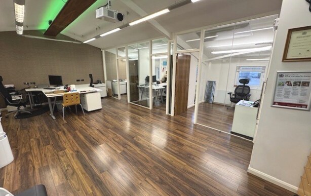 Comprising a former warehouse arranged over ground and 1st floor which has been extensively converted to create ground floor warehouse area and well appointed offices. The ground floor includes reception area, 2 x boardrooms, server room, male & female WC’s, as well as warehouse storage area. (The boardrooms on the ground floor could be removed easily to create a larger ground floor warehouse area).
