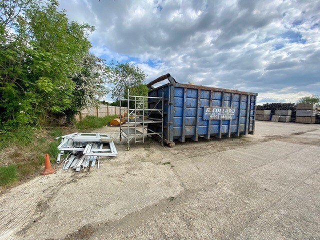 Unit 2 comprises a steel portal framed building which includes concrete floor, roller shutter door, single phase power, LED lights, water supply, minimum eaves' height of 2.4m rising to 4.4m plus three parking spaces.