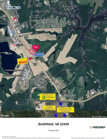 Situé à l'intersection avec signalisation du boulevard Benns Church et de la promenade Turner. Avec 800 pieds de façade le long du boulevard Benns Church. Ce projet de développement commercial se trouve à proximité d'une pléthore de projets résidentiels et commerciaux, notamment : l'hôpital Riverside (ouverture en 2025), le centre-ville de Benns Grant (776 maisons), la gare Brewer's (261 maisons), Nest on 17 (208 maisons), The Crossings (210 maisons) !