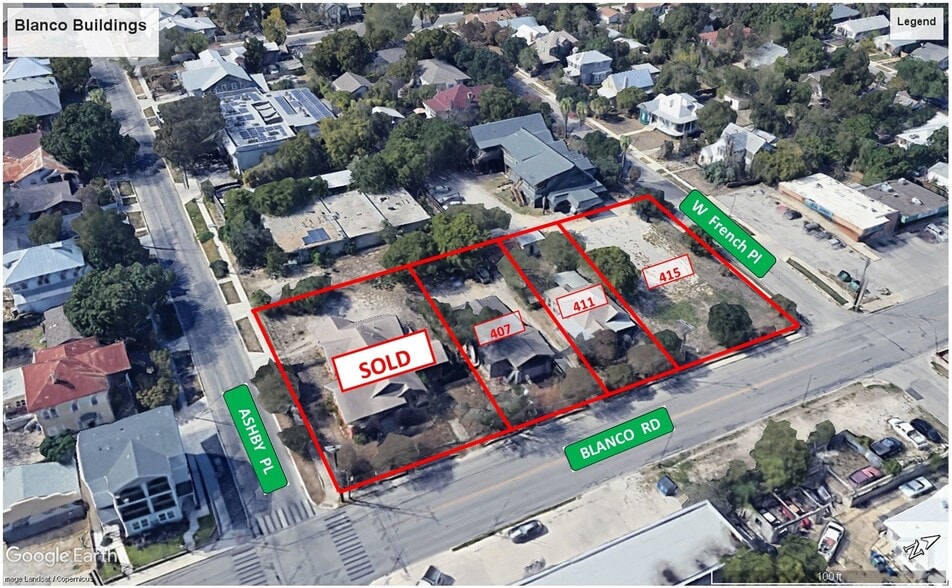 A rare block-up of commercial properties in the Beacon Hill Neighborhood with excellent access to Monte Vista, Midtown, Pearl & Downtown. One vacant commercial lot of .33 acres at the SW/c of Blanco & W. French, and two converted homes at 407 and 411 Blanco Rd, suitable for residential or commercial use. Available as a package or all properties available separately.