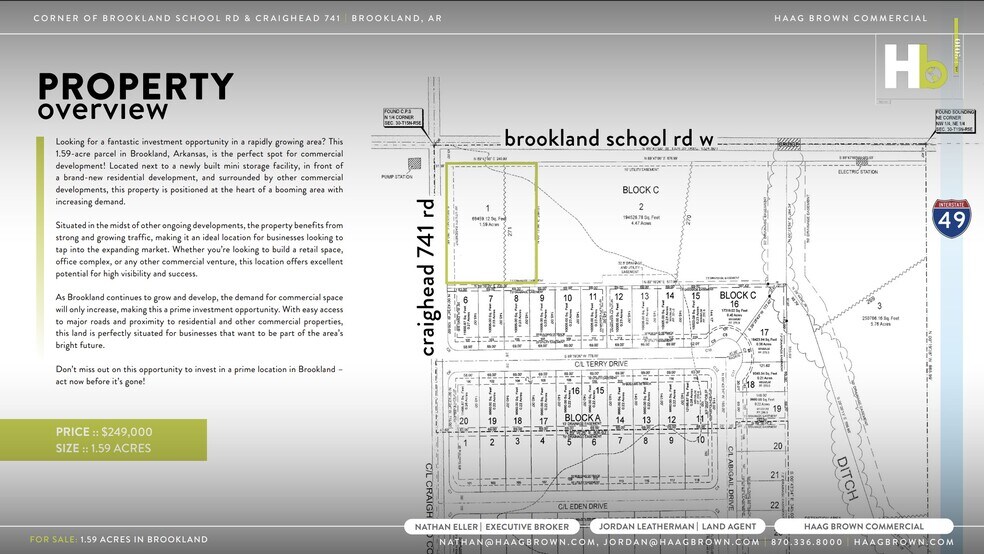 Vous cherchez une opportunité d’investissement fantastique dans une région en pleine croissance? Ce terrain de 1,59 acre situé à Brookland, Arkansas, est l’endroit idéal pour un développement commercial! Situé à côté d’un tout nouveau centre de mini-entrepôts, en face d’un développement résidentiel flambant neuf et entouré d’autres projets commerciaux, cette propriété se trouve au cœur d’une zone en plein essor avec une demande croissante. Au milieu de nombreux projets en cours, cette propriété bénéficie d’un trafic important et en constante augmentation, ce qui en fait un emplacement idéal pour les entreprises souhaitant tirer parti de ce marché en expansion. Que vous envisagiez de construire un espace de vente au détail, un complexe de bureaux ou tout autre projet commercial, cet emplacement offre un excellent potentiel de visibilité et de succès. À mesure que Brookland continue de croître et de se développer, la demande pour des espaces commerciaux ne fera qu’augmenter, faisant de cette propriété une opportunité d’investissement de premier choix. Avec un accès facile aux routes principales et une proximité avec des zones résidentielles et d’autres propriétés commerciales, ce terrain est parfaitement situé pour les entreprises qui veulent faire partie de l’avenir prometteur de la région. Ne manquez pas cette occasion d’investir dans un emplacement de choix à Brookland – agissez maintenant avant qu’il ne soit trop tard!
