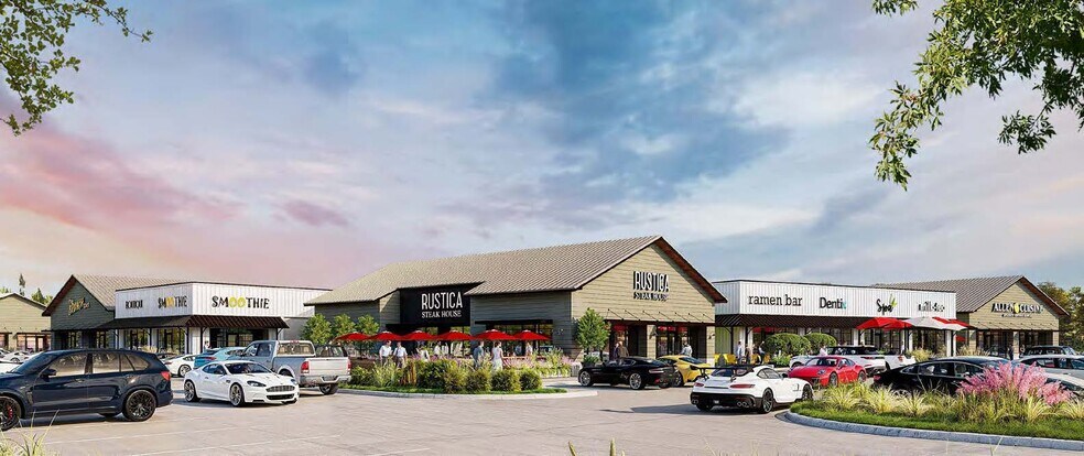 Building D (±7,400 SF) Building D delivers exceptional exposure and convenience within a curated retail mix designed for daily needs and lifestyle enhancements. With plentiful parking and adjacency to future residential cottages, this location is perfect for concepts targeting both local residents and regional visitors.