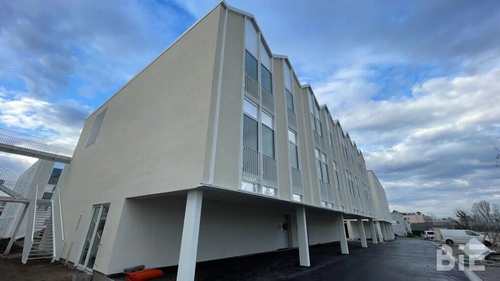 Bordeaux Immobilier d'Entreprises - Programme « La Goutte d'Eau » à Bruges Le programme La Goutte d'Eau, situé à Bruges, au pied de la sortie n°6, s'inscrit dans le projet de réaménagement urbain du quartier de Terrefort. À proximité du centre-ville, des commerces et des services, ce programme propose des locaux d'activité et des bureaux, disponibles à la location ou à la vente. Cet ensemble moderne et fonctionnel offre un environnement professionnel de qualité au sein d'un secteur en plein renouveau. Bâtiment en R+2 classé code du Travail Bureaux livrés terminés non cloisonnés Labellisation Breeam Very Good, démarche E+ C- Panneaux solaires en toiture Jardin partagé et espaces en pleine terre sur une surface de 4 000 m2 Toiture et terrasses végétalisées Plateaux de 620 m2 environ du RDC au R+2 (Bâtiment BS) Faux- plafonds acoustique en dalles Climatisation réversible (type VRV) en faux plafond - Ventilation double flux Système de type GTB 1 ascenseur Dalles de moquette 500 x 500 pour les bureaux Hauteur libre en étage courant 2m70 Trame de façade 1m20 - Façade porteuse en béton et menuiserie aluminium 23 places de parking, possibilité d'en avoir plus - Ratio : 1 place / 50 m2 Bornes de recharge pour véhicules et vélos électriques 3 places de parking pour le lot CN02 : soit 36000 euros HT Surface RDC : 327,5 m² Surface terrain : 0 468 m² divisibles à partir de 231 m² Situation/Transports : Sortie rocade Sortie 6 Bus Gare de Bruges (29-72) SNCF Bruges Tramway Gare de Bruges (Ligne C)