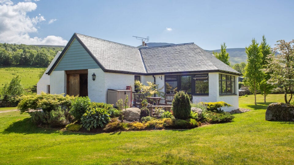 Burnbank is a high amenity property accessed from a meandering farm track through the rolling valley countryside, in a location designated as National Scenic Area. The subjects comprise of excellent grazing land and beautiful well-tended gardens, surrounding the property to all sides. The property in all extends to approximately 0.6 Ha (1.6 acres) and a further 4.8 Ha (12 acres) of class 4.2 is available by separate negotiation,. The terrace of properties to the front comprises of a 4-bedroom principal residence with former holiday let cottages either side. To the rear is a self-contained detached one-bedroom property. The properties are presented in move-in order throughout. The principal residence has exceptional attention to detail with exquisite finishes and an abundance of character, a real chocolate box of a cottage with glorious views. Externally there are two useful timber frame sheds with corrugated cladding and dog kennels.