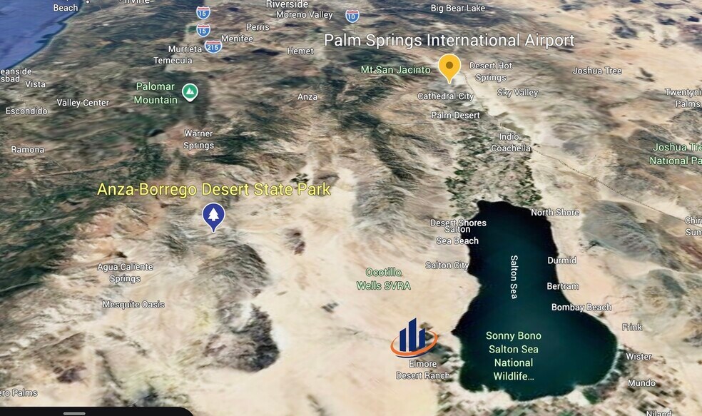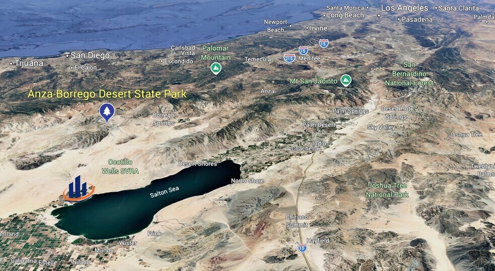 178 Acre property with 1 mile road frontage on 4 lane divided CA-86 Hwy, positioned 100 miles east of San Diego and 66 miles south of Palm Springs International Airport.