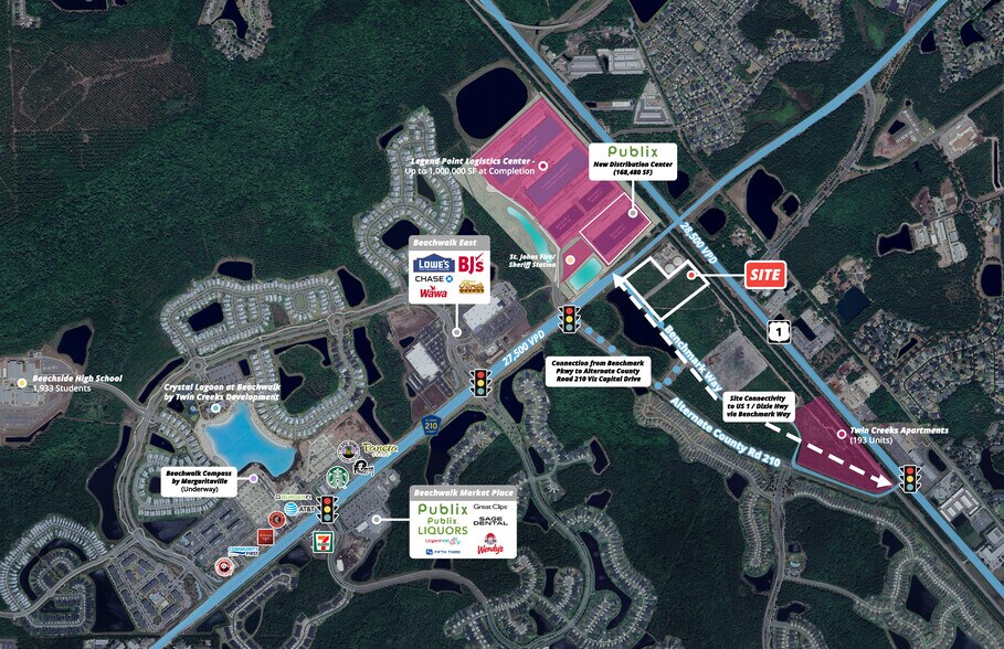 9 Acres available adjacent to Beachwalk Lifestyle / Beachwalk marketplace / Beachwalk East • Land available for Ground Lease or Build to Suit • Zoning is extremely flexible • Site fronts CR 210 • Access from CR 210 and Alternate US 1 • Less than a mile from I-95 • St. John's County: 4.04% population growth rate, the 4th fastest growing county in the US