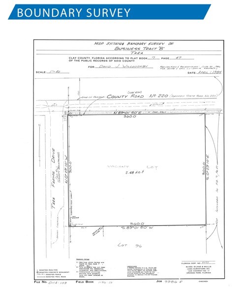 ±2,11 acres Près de la promenade College et de l'intersection CR-220 À mi-chemin entre l'autoroute 17 et le boulevard Blanding Façade de 360 pi sur le CR-220 Nombre de trafic : 33 000 sur le CR-220 et 20 000 sur College Drive