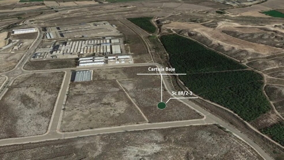 Terrain à usage industriel, avec des surfaces à partir de 11 979 m2 situé à Cartuja Baja, province de Saragosse. Il est situé dans une zone industrielle de la localité, à quelques minutes de l'accès à la CV-624. L'ensemble est composé de trois parcelles dont les surfaces varient entre 9 043 m2 et 11 979 m2, toutes destinées à un usage industriel. La zone se caractérise par la présence prédominante de bâtiments industriels de 2 à 7 étages, avec une surface moyenne inférieure à 500 m2. Référence cadastrale : 2364603XM8026C0001IK | Finca Registral : 18746.