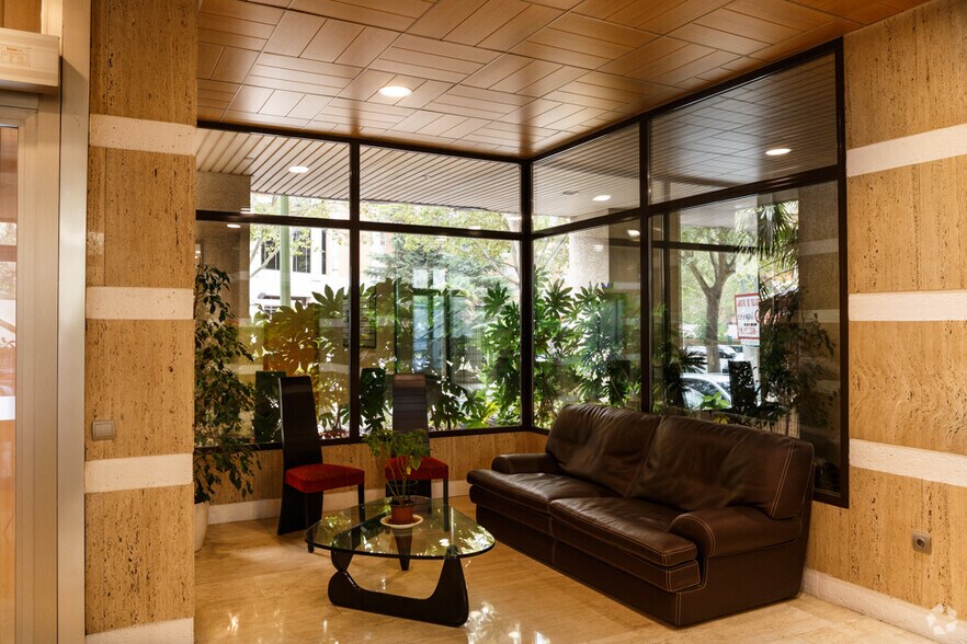 Edificio exclusivo de oficinas con excelentes calidades y completas instalaciones. La fachada cuenta con cerramiento exterior en Cotegran y vidrio aislante Reflectasol, ofreciendo eficiencia y una imagen corporativa moderna. El portal está revestido en mármol travertino, material que también se extiende al núcleo de escaleras, aportando representatividad al conjunto. Los vestíbulos y aseos disponen igualmente de acabados en mármol tanto en suelos como en paredes. El edificio está dotado de dos ascensores que comunican la planta de acceso con las siete plantas de oficinas, además de un ascensor adicional que conecta la planta de acceso con las dos plantas de garaje. En materia de seguridad, dispone de circuito cerrado de televisión perimetral para control de intrusión, servicio de recepción y vigilancia 24 horas, y sistema de control de accesos mediante ordenador de gestión. Posibilidad de alquiler de plaza de aparcamiento por 120€/plaza/mes. El interior de las oficinas ofrece falso techo metálico fónico y falso suelo técnico sobreelevado en placas de 60 x 60 cm, facilitando la flexibilidad en la implantación de puestos de trabajo. Las paredes son lisas, con pintura plástica mate ignífuga de primera calidad. Cuenta con doble núcleo de aseos independiente cada 300 m² de oficinas, equipados con mobiliario bajo lavabo. Las instalaciones incluyen red de voz y datos, fuerza y alumbrado, hilo musical y megafonía, así como sistema de detección y extinción manual de incendios. La climatización se realiza mediante acondicionadores independientes por planta, tipo bomba de frío/calor, con dos unidades por módulo y orientación norte-sur. La impulsión de aire se distribuye a través de conducto común en toda la planta. La altura libre interior es de 2,95 metros, proporcionando amplitud y confort en los espacios de trabajo.