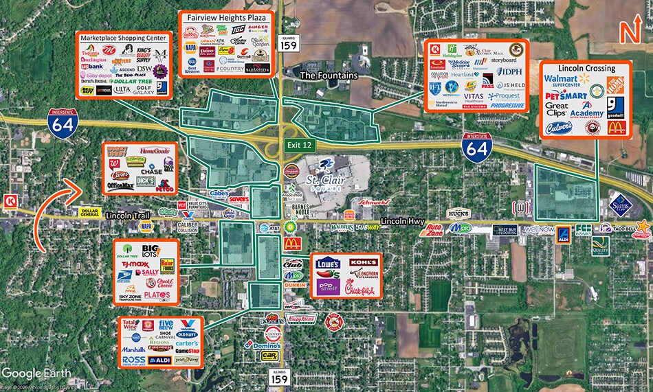 Located along East/West Thoroughfare of Lincoln Trail. One Mile West of Illinois 159 (North Illinois) and 1.5 Miles from Interstate 64. Residential, multi-family, retail and office surrounding property.