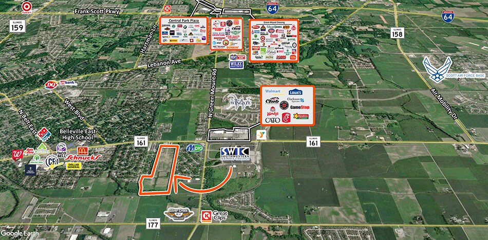 Residential Development Majority of the property is zoned single family residential within the City of Belleville and a portion is zoned single family residential in St. Clair County. Property is partially developed–some grading, some streets, some utilities and platting already in place. Located on the east end of Belleville off of Illinois Route 161 (Carlyle Ave) and 0.35 miles from S.W.I.C. and Green Mount Commons Shopping Center. Within the Belleville East High School district.