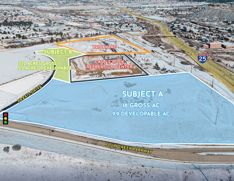 - Excellent land development opportunity strategically located at the prominent Northwest corner of I-25 and Plum Creek Pkwy
