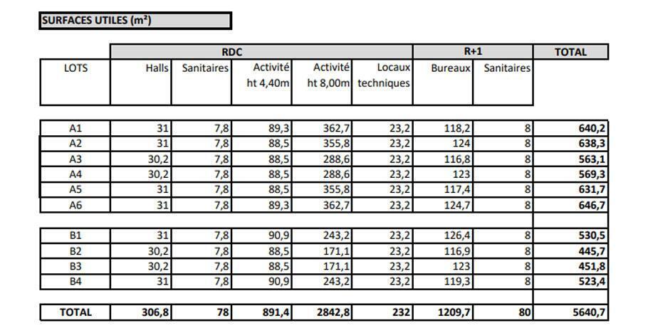 | Espace | Taille | Terme | Taux de location | Utilisation de l’espace | Aménagement | Disponible |