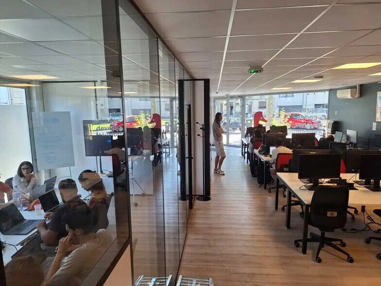RCG vous propose à la location des locaux commerciaux classés ERP 5 type R de 170 m² idéalement situés au pied du Tram A Jean Jaurès limite Bordeaux et à proximité immédiate de la Gare de Cenon. Sur un axe passant, ces locaux offrent un beau linéaire de vitrine avec emplacement visible pour enseigne. Locaux rénovés récemment et aménagés en 2 open spaces, 1 bureau de direction et 2 salles de réunion / formation. Possibilité de louer une extension d'environ 50 m² en face. . Beau linéaire de vitrine avec possibilité enseigne . Accès indépendant sur rue . Rampe d'accès PMR intégrée . Locaux rénovés récemment classés ERP 5 type R effectifs max 50 personnes . Cloisonnement amovible vitré . 2 open spaces / 3 bureaux cloisonnés . Climatisation réversible . Deux sanitaires dont 1 PMR . Coin cuisine . Sol PVC, faux plafond . Local technique avec baie de brassage . Câblage RJ45 . Eclairage led Surface RDC : 173,23 m² Dépot de garantie : 1 mois de loyer HT/ HC Conditions particulières à la location : Nettoyage des chéneaux à prévoir tous les 6 mois Entretien climatisation à la charge du locataire 1X/an