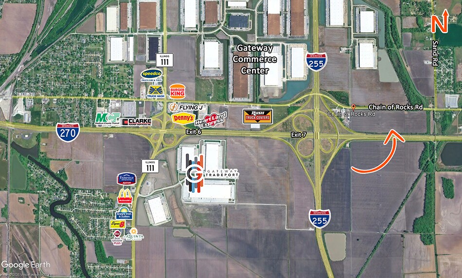 Excellent frontage on I-270 with 50,000 ADT, accessible from either IL-111 or IL-157 on Chain of Rocks Rd