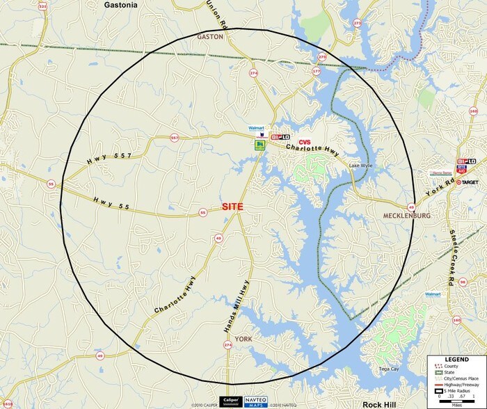 - Plus de 3 acres disponibles dans les parcelles adjacentes à l'angle de la route 55 SC et de la route Charlotte