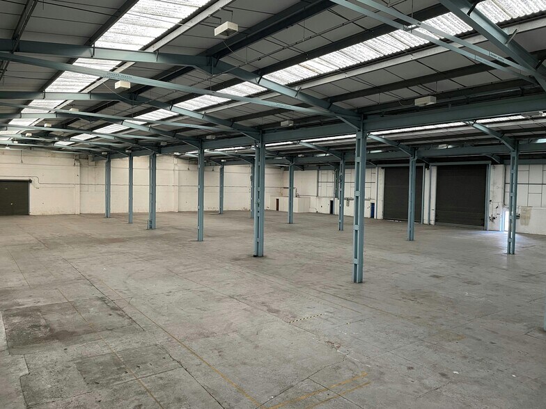 Units 5 and 6 are constructed with brick elevations to approximately 2m with profile cladding above. The roof incorporates intermittent translucent roof lights and is of steel truss structure with sodium lights and concrete floor. The minimum eaves of the warehouse is 6.96m rising to 7.79m. The unit benefits from vehicle access via two electric roller shutter doors measuring 5.42m (wide) x 6.97m (high) which leads out onto a concrete gated yard with a depth of 17m.