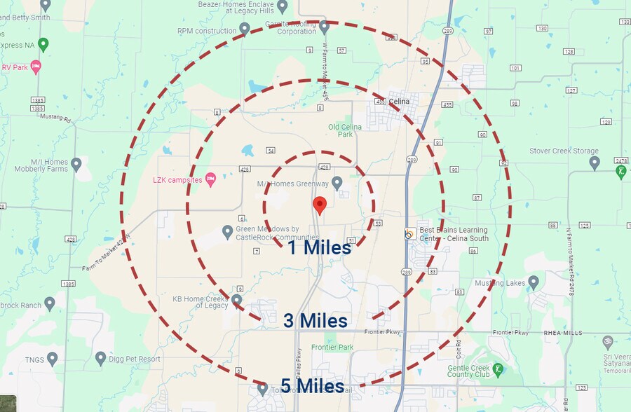 L'emplacement, à l'angle sud-est de l'intersection, se trouve à la voie principale desservant la boucle extérieure du comté de Celina et de Collin. Le site est conçu pour une utilisation mixte avec des tampons de vente au détail, des hôtels, des bureaux et des cabinets médicaux.