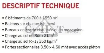 | RDC | 6 243 pi² | Négociable | 18,43 $ CAD/HT-HC/pi²/an 1,54 $ CAD/HT-HC/pi²/mois 115 034 $ CAD/HT-HC/an 9 586 $ CAD/HT-HC/mois | Industriel | - | Maintenant |