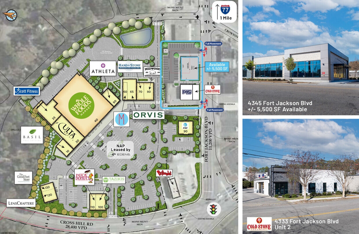 - Excellent emplacement sur le boulevard Fort Jackson dans le centre du marché Cross Hill.