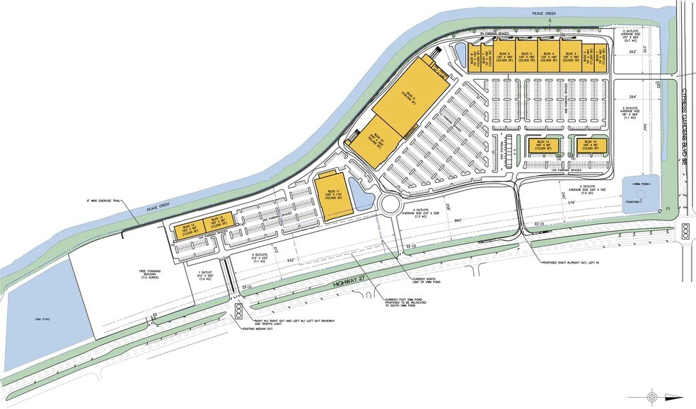 Projet de développement de commerce de détail de 252 000 pieds carrés situé à l'intersection très visible et signalée du boulevard Cypress Gardens (SR 540) et de la route américaine 27 à Lake Wales. 3,5 milles à l'est de Legoland en Floride, un parc à thème interactif de 150 acres, et à seulement 8 milles à l'est du nouveau terminal intermodal CSX connu sous le nom de Central Florida Centre de logistique intermodal (ILC)