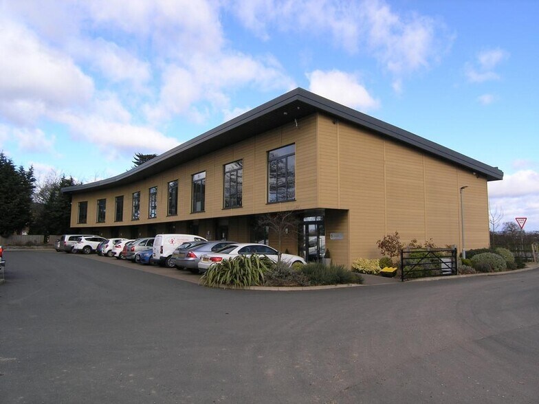 Les locaux de bureau sont autonomes et répartis sur deux étages. Le rez-de-chaussée comprend un espace à aire ouverte, un bureau séparé à l'avant du bâtiment, ainsi qu'un espace supplémentaire pour bureau ou salle de réunion à l'arrière, qui bénéficie également d'une installation de coin thé. Un escalier mène au premier étage, qui est principalement composé d'un espace à aire ouverte, avec un coin thé et des installations sanitaires (W/C), ainsi qu'une salle de réunion. Un W/C accessible est disponible au rez-de-chaussée. Les spécifications incluent un revêtement de sol en LVT, des plafonds suspendus avec éclairage LED encastré, des goulottes périphériques pour le câblage électrique et réseau, ainsi que des unités murales de chauffage/climatisation (non testées). Huit places de stationnement sont attribuées, en plus des espaces visiteurs partagés disponibles sur le site.