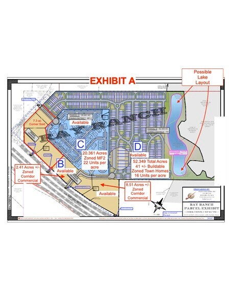 41+/- acres de construction à louer, maisons en ville : zonées 16+/- unités par acre, 656 unités, disponible 3,15$ pi2 ou 8 575$ par unité.