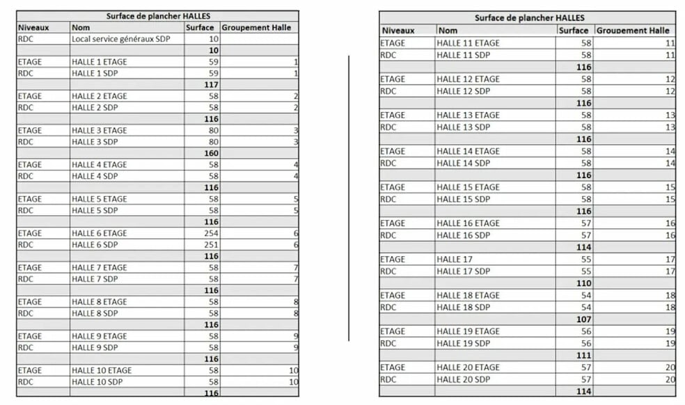 Espace Taille Terme Taux de location Utilisation de l’espace État Disponible