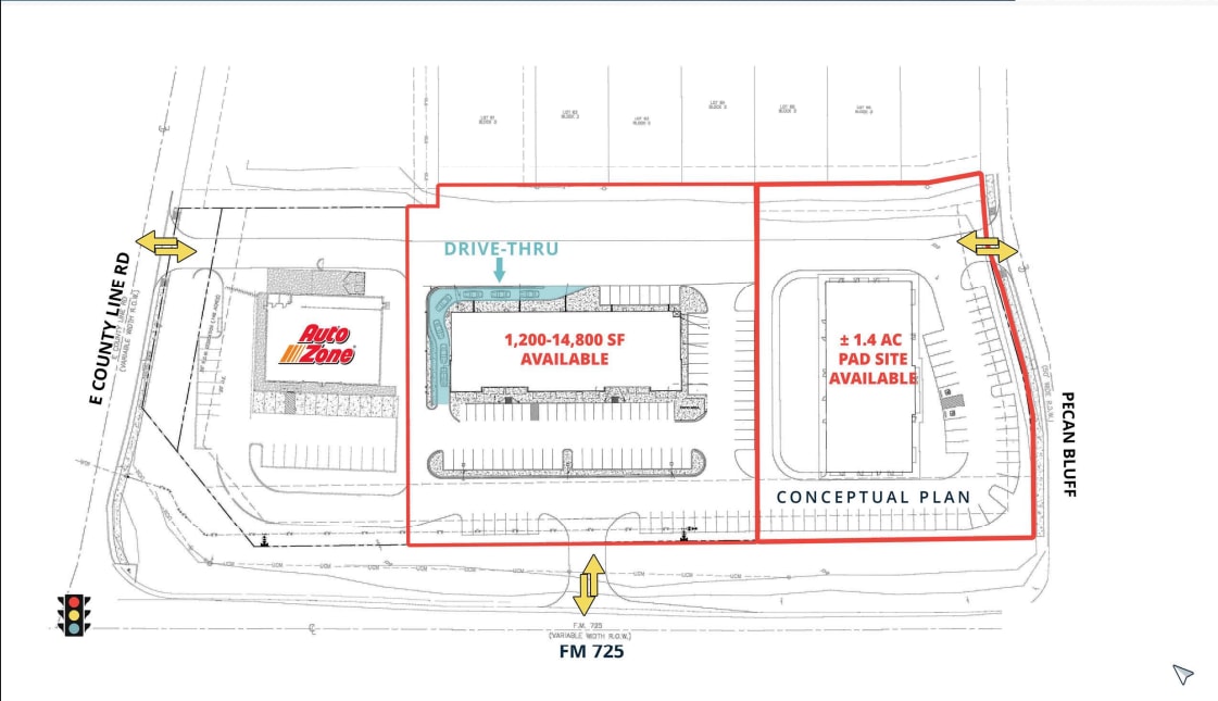 Pecan Crossing FM 725 and County Line 1 200–14 800 pi² d'espace disponible • Commerce de détail • New Braunfels, TX 78130