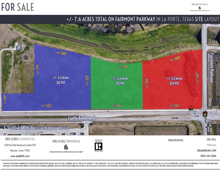 +/- 7,6 acres au total — 3 parcelle (par HCAD) Près du Collège San Jacinto et du Conseil de sécurité de la région de Houston +/- 36 000+ DPC (Fairmont) Près du complexe du Centre des congrès de Pasadena Grand commerce de détail ou bureau Grand coin faisant une grande parcelle pour le développement 347' Façade Sur Fairmont Voie d'angle avec signal Zoné commercial général Prix : (Toutes les 3 parties) - 10$ PSF (3 310 560)