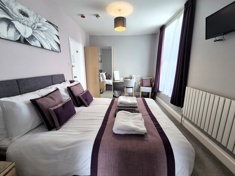 The Grosvenor House is a well-established and attractive hospitality business, prominently positioned yet set back on Falkland Road, close to Torquay seafront, mainline railway station and town centre. The property is arranged as an operational bed and breakfast offering eight en-suite letting rooms, a licensed bar, and versatile owners’ accommodation, together with private parking and landscaped gardens.