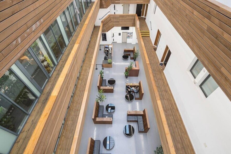 This striking mixed-use development offers a collection of characterful, media-style commercial units arranged across three floors, designed to support a wide range of creative and business uses. At the heart of the building is an impressive reception and lounge area, centred around a dramatic glazed atrium that floods the interior with natural light and creates a welcoming, collaborative environment for occupiers and visitors alike.