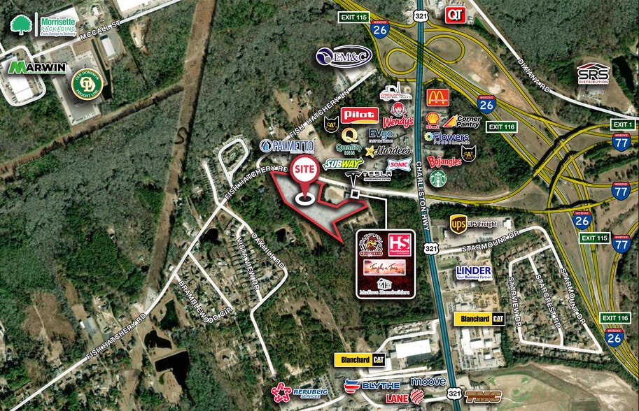 - Exceptional regional access: ±0.3 miles to Hwy 321, ±1 mile to I-26, ±2 miles to I-77, and ±9.5 miles to I-20