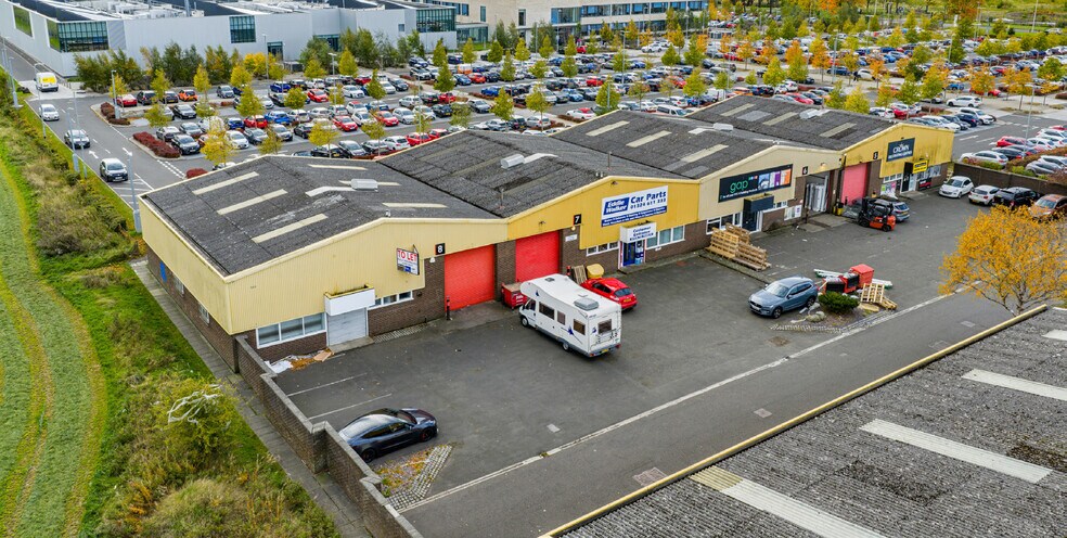 Les locaux comprennent des unités industrielles mitoyennes de construction en ossature d'acier, avec un revêtement isolé sous des toits inclinés et revêtus.