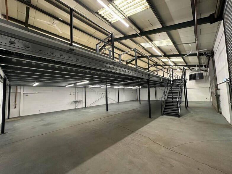 Features include two electric roller shutters, an office area, a mezzanine of 1,768 sq ft, and a telephone line. Ample car parking is available on-site.