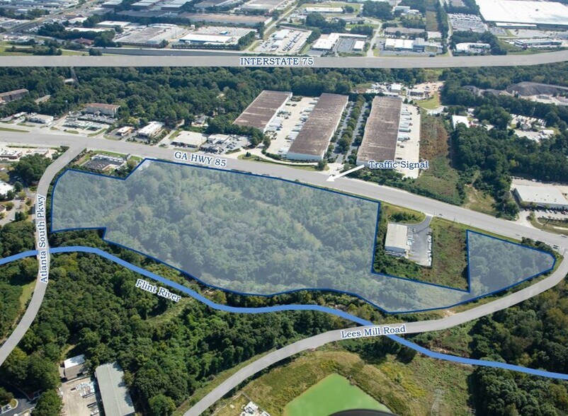 TERRES INDUSTRIELLES DISPONIBLES À BAIL Endroit : Autoroute 85 GA entre Atlanta South Pkwy & Lees Mill Rd - 1 Mile à I-75 @ Sortie 237 - 2,5 milles à I-285 @ Sortie 60 - 3 milles à l'Aéroport international Hartsfield-Jackson - 6,5 milles à I-85 - 10 milles au centre-ville d'Atlanta ID des parcelles : 13075B G001 - 2,34 acres 13075B G003 - 6,73 acres 13075D A001 - 9,89 Acres 13086A B001 - 2,13 Acres Supersuperficie totale : ±21,09 Municipalité : Clayton County Zonage : HI — Industriel lourd Accès : Pause médiane avec intersection signalée au milieu de la route 85 GA Superposition : district de Cherry Hills (à l'exclusion de la parcelle 13086A B001) Route 85 de GA, façade : ±1 460 pi Autre : Situé sur la route MARTA Transit (191) Incitatifs : Zone d'entreprises