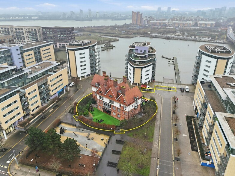 Gallyons Bar & Kitchen occupies a prominent position at the centre of the Royal Albert Wharf development, at the centre of an amphitheatre-style depression. It overlooks an outdoor public space with a playground and has frontage on Basin Approach, Gallions Road, and Albert Basin Way, as well as a pedestrian right of way to the rear.