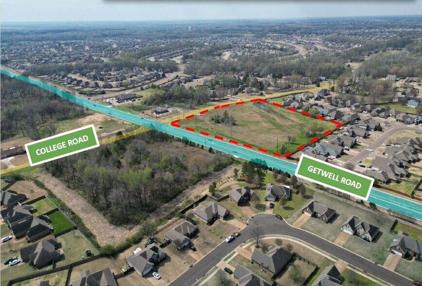 5 AC on Getwell Rd. at College Rd. in Southaven, MS Ground Lease Available at Stoplight Corner •Up to 5 AC available for ground lease on NW corner of Getwell Road at College Road. •Stoplight Corner with 24,000 VPD •Huge Area of Growth •482’ of Frontage on Getwell Road Parcel ID Number 207209000 0000800