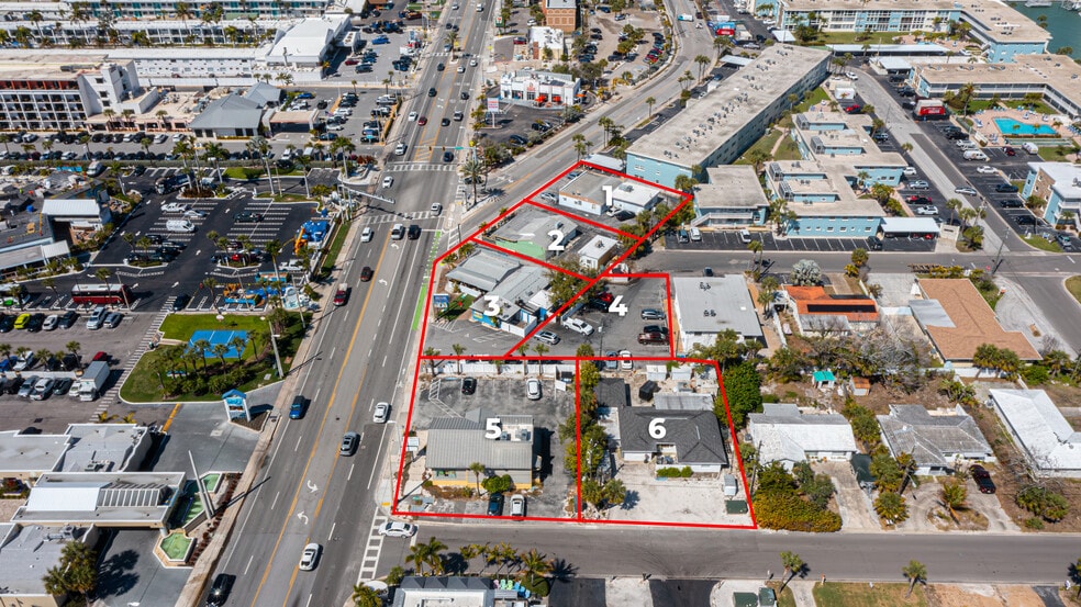 Positioned along Gulf Boulevard at 59th Avenue, this multi-parcel assemblage represents one of the few remaining large-scale redevelopment opportunities on St. Pete Beach. Spanning approximately 1.09 acres, the property includes a strategic collection of parcels currently improved with restaurant and service-oriented uses, including the Subway site, Boulevard Burgers, a florist, and a salon.