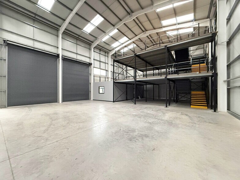 New build flexible industrial/warehouse units finished to a shell specification. The unit benefits from a kitchenette, office, 9m to haunch, roller shutter door and ample parking. A Ground floor unit comprising of 2,777 SF with an additional 1,198 SF of Mezzanine area.