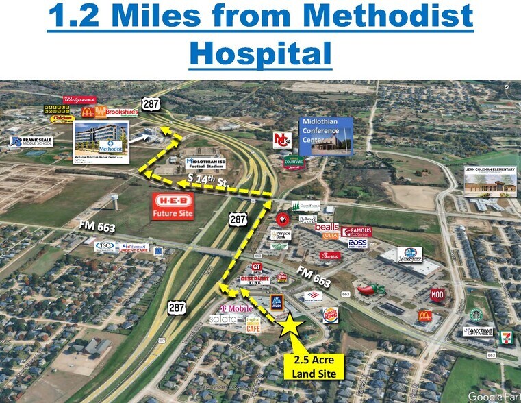 Easy Access to 287 in Rapidly Growing market just 1.2 miles from Midlothian Methodist Hospital. No floodplain and no need for detention. All utilities available. This site is ready to develop. The zoning allows for professional/medical office.