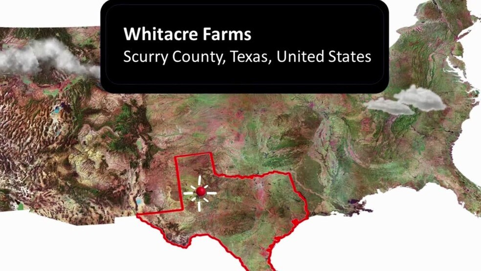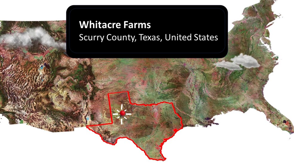 Cette ferme de 591 acres du centre-nord du Texas est située à l'angle sud-est du comté de Scurry et à la périphérie des comtés de Nolan et de Fisher. La propriété est située à environ 17 milles au nord-ouest de Sweetwater et à environ 20 milles au sud-est de Snyder. Elle est coupée en deux par la State Highway 84, avec environ 396 acres du côté nord-est de la route 84 et 195 acres du côté sud-ouest de la route 84. Plus de 1 mille de façade sur la route 84 divisée et 4 200 pieds de façade sur la route de comté 466.